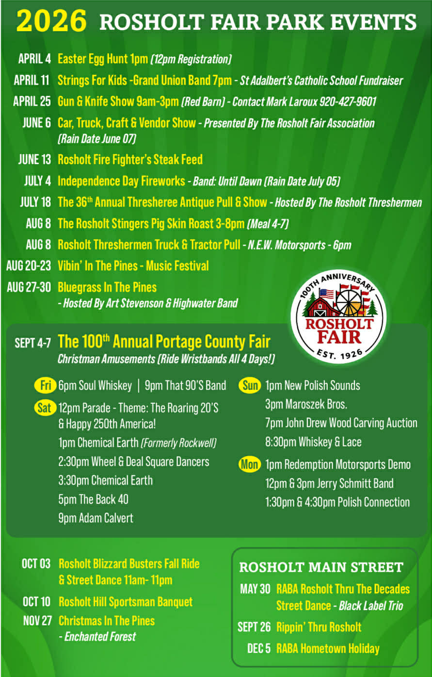 Please note that the Rosholt Fair Association has updated our policy and created a form regarding groups other than 4H and FFA from showing at the fair. More Info / Form
